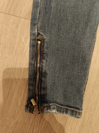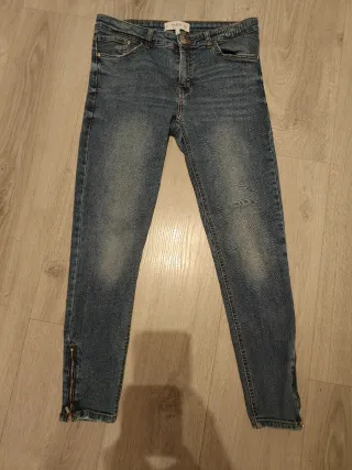 Vaqueros de corte ajustado con un diseño moderno. Cropped, cintura baja. Talla 40 pero más bien 38 - Detalle de cremallera en los bajos. - Lavado desgastado para un look casual. - Cintura con trabillas para cinturón.