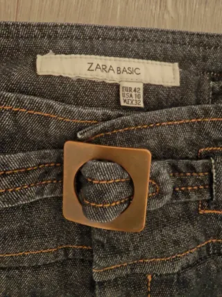 Vaqueros ¾ de corte acampanado con un diseño moderno y detalles cuidados. - Tejido vaquero de calidad. - Cinturón de madera incluido. - Costuras en contraste. Pequeño tara atrás ( ver último foto)