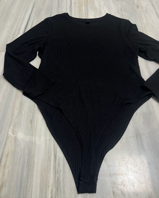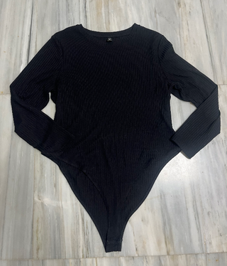 Body negro de tejido canalé elástico, de manga larga. ✨ Color: Negro ✨ Marca: Shein ✨ Talla: 3XL ✨ Medidas: hombros 49cm / axilas 63cm / largo 89cm / largo manga 61cm / contorno biceps 40cm / pecho 114cm / cadera 60cm ✨ Composicion: 97% poliester / 3% elastano