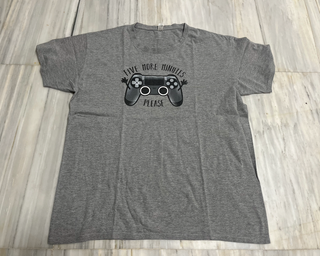 Camiseta gris con estampado divertido para gamers de mando de videojuegos y frase “Five More Minutes Please”, perfecta para amantes de los videojuegos. ✨ Color: Gris ✨ Marca: Pampling ✨ Talla: 3XL ✨ Medidas: hombros 59cm / axilas 66cm / largo 77cm / largo manga 20cm / ancho mancga 20cm ✨ Composicion: 97% algodon / 3% elastano