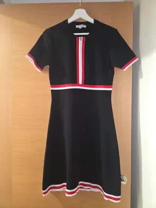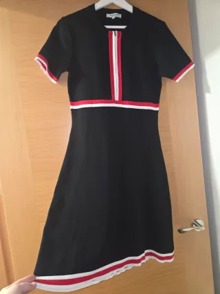 Vestido de punto de la marca Morgan, ideal para un look casual. - Diseño de manga corta. - Cremallera frontal con detalles en blanco y rojo. - Ribetes a contraste en cuello, mangas y bajo.