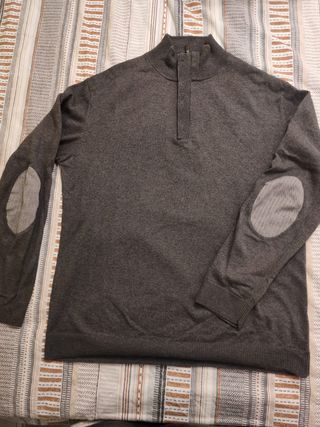 Jersey de punto de hombre con coderas y cuello de botones y cremallera de la marca Cortefiel. Talla M