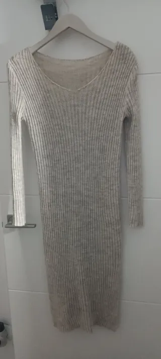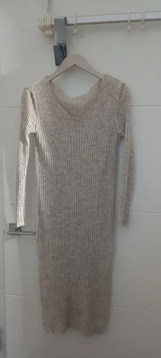 Vestido midi de punto color crema
