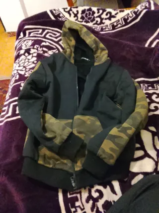 Chaqueta con capucha para chico, con un diseño moderno y llamativo. - Mangas y capucha con estampado de camuflaje. - Cierre de cremallera frontal. - Puños y bajo elásticos.