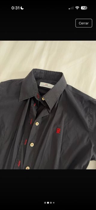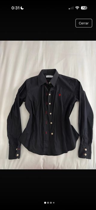 Elegante camisa de manga larga de Carolina Herrera. Está en muy buen estado, pero es más una talla S - Diseño clásico con cuello. - Botones frontales. - Detalle de costuras rojas. - Puños con botones.