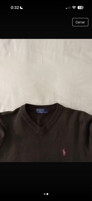 Jersey de manga larga con cuello en pico. Usado pero esta en muy buen estado - Logo de la marca bordado en el pecho. - Tejido suave y ligero.
