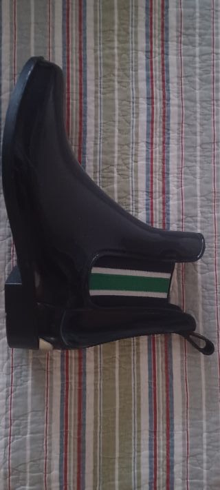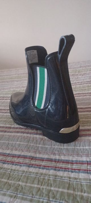 Botas de agua de color azul oscuro. - Talla 38. - Detalle de banda verde y blanca. - Muy poco uso