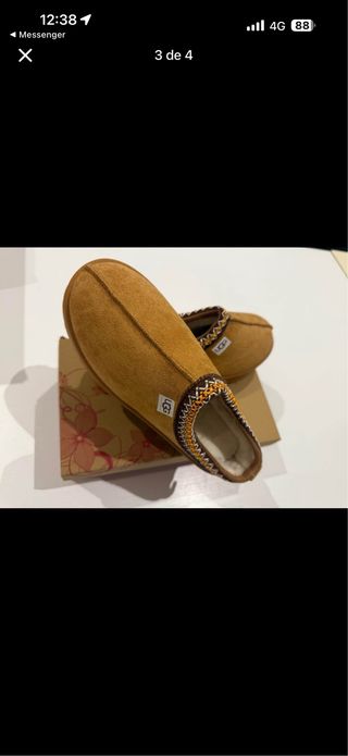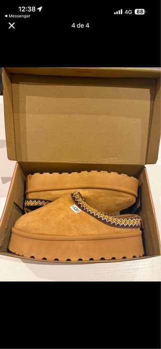 Zuecos de la marca UGG en color beige. - Diseño abierto en el talón. - Detalle de pespunte decorativo en la parte superior. Como se ve en las fotos, complemente NUEVA. Tallas disponibles: 38 y 39. Escucho ofertas razonables. Entrega en Barcelona. NO SE ADMITEN DEVOLUCIONES