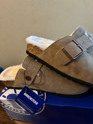 Zuecos Birkenstock Beige/Marrón con Borreguito