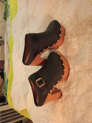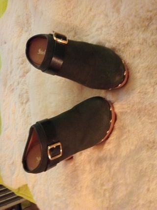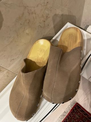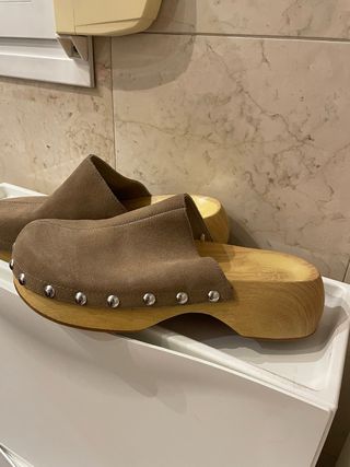 Zuecos de madera con detalle de tachuelas. - Material exterior de ante. - Suela de madera. - Diseño tipo zueco.