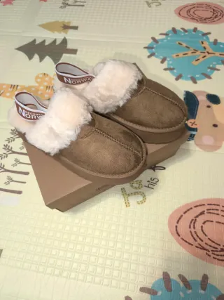 Zuecos estilo borreguito de la marca UGG. - Diseño tipo mule. - Adorno de greca en la apertura. - Suela gruesa y cómoda. No son originales Las tengo en 79€