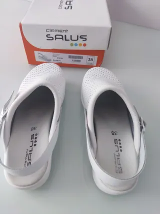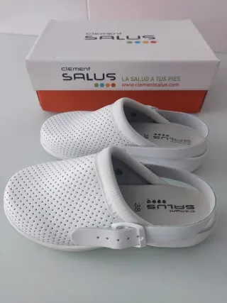 Zuecos cómodos y prácticos de la marca Salus. - Diseño perforado para mayor transpiración. - Correa ajustable en el talón. - Suela con logo de la marca.