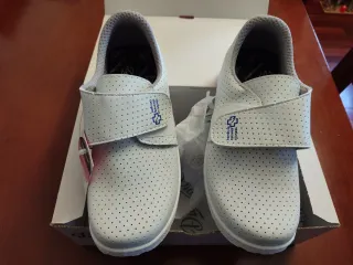 Zuecos anatómicos en color blanco, en excelente estado. - Diseño ergonómico. - Material flexible y duradero. - Tira trasera ajustable. Regalo pantalón pijama sanitario nuevo