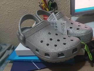 Zuecos Crocs Classic Glitter Plata Talla 36-37