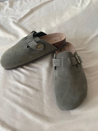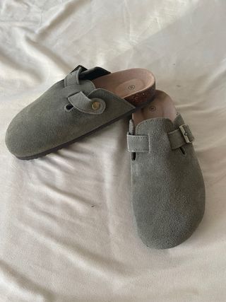 Zuecos de ante en color verde oliva. -Materiales premium - ante natural, corcho y EVA de alta densidad. -Comodidad ergonómica - plantilla acolchada que se adapta a cada paso. -Durabilidad consciente - hechos para durar años, no temporadas. PRECIO WEB: 59,90€ lo vendo por 50€ 📌 Política de devoluciones: No acepto devoluciones por errores de talla o por no quedar como se esperaba. Solo se admiten devoluciones si la prenda llega dañada o en un estado diferente al descrito. 📦 Solo envíos por Wallapop. No entregas en mano. Gracias por la comprensión.