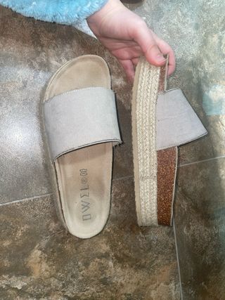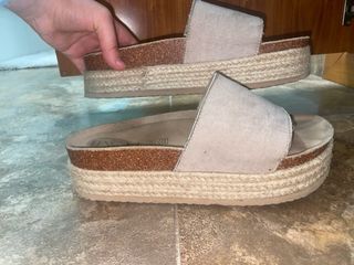 Zuecos de plataforma con un diseño moderno y cómodo. - Material exterior de ante sintético. - Plataforma con detalle de esparto. - Suela de goma antideslizante.