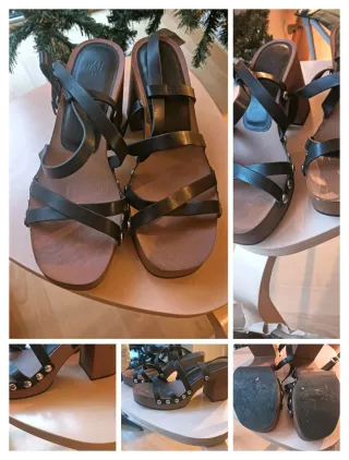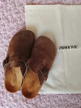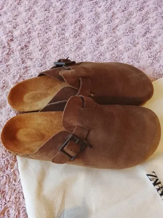 Zuecos de la marca Zara en color marrón. - Diseño tipo zueco. - Correa ajustable con hebilla.