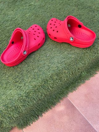 Zuecos clásicos de la marca Crocs en color rojo. - Diseño cómodo y ligero. - Tira trasera ajustable. - Orificios para ventilación y personalización.