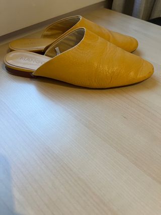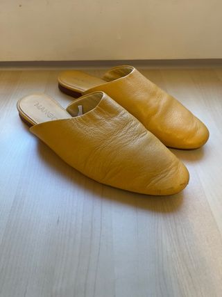 Zuecos de la marca Mustang en color beige y talla 41. Se encuentran en buen estado. - Diseño abierto en el talón. - Material exterior tipo ante. - Detalle de vuelta en la caña.