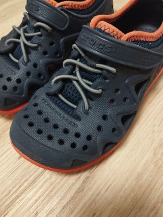 Vendo zapatitos Crocs para niño, en azul y naranja. Están en muy buen estado. Utilizadas solo para ir a la playa. - Ideales para el verano. - Cómodos y ligeros. - Fáciles de poner y quitar. Talla 11 c equivale a una talla de niño o niña 28 o 29