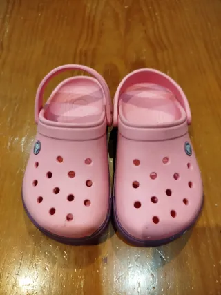 Preciosos zuecos Crocs para niña, en color rosa. Son dos zuecos, ideales para el verano. Están en buen estado, apenas usados. - Cómodos y ligeros. - Perfectos para el día a día. No son talla 35 pero el anuncio no me deja poner la talla más pequeña.