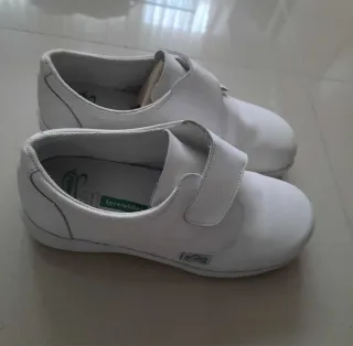 Vendo zuecos para sanitarios marca SKARPPA de piel en color blanco. Talla 38. Nuevos a estrenar. Tiene suela antibacteriana y antideslizantes. La plantilla es acolchada de tejido sobre espuma de poliuretano con tratamiento antibacterias y carbón activo. Altamente transpirable con gran capacidad de absorción de humedad y rápido secado. Empeine acolchado para evitar rozaduras. Correa ajustable al talón con hebilla. Lavable en frío y en caliente, máximo 40°. En caso de tener que enviarlos, el envío se haría por aquí y los gastos correrían a cuenta del comprador.