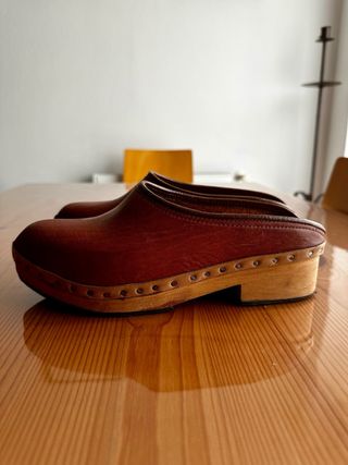 Zuecos de piel con suela d madera. Talla 37. Usados un día