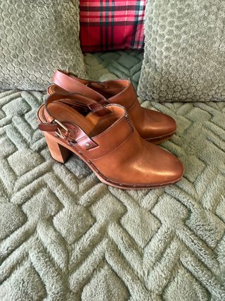 Zuecos de piel, nuevos, a estrenar, ajustables, sirven para un 38