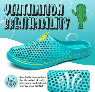 Sandalias tipo zuecos unisex, talla 41, color verde azulado. Son ligeras y cómodas. - Diseño de agujeros para ventilación. - Ideales para verano. - Perfectas para uso diario.