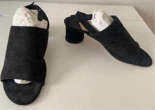 Sandalia/Mules de ante de la marcha Oysho. Color negro, talla 38. Muy poco uso ya que se han utilizado en un par de ocasiones, se encuentran en muy buen estado.