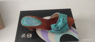 Zuecos mujer en color verde tirando a turquesa, con tacón en madera de 7cm.
