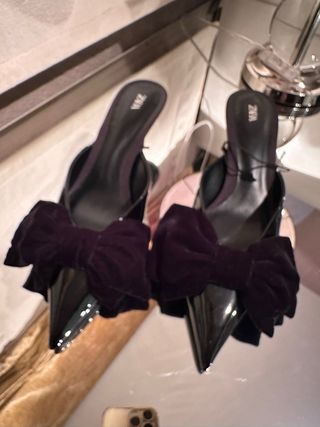 Mules Zara Tacon Lazo Terciopelo Sin Estrenar