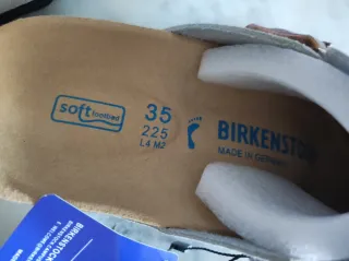 Zuecos cómodos de la marca Birkenstock. - Color gris claro. - Talla 35. - Detalle de hebilla. - Suela interior blanda.