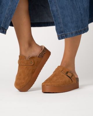 Preciosos zuecos de ante marrón, ideales para estar cómoda en casa. Son de plataforma y tienen una hebilla decorativa. - Fabricados en ante. - Diseño de plataforma. - Hebilla decorativa. - Cómodos y elegantes. Más tallas en samrosa.shop