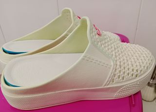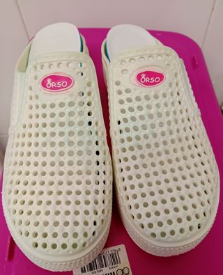 Zuecos cómodos y versátiles, perfectos para el día a día. - Diseño con múltiples orificios para ventilación. - Correa trasera para mayor sujeción. - Material sintético fácil de limpiar. - Talla 35. Largura de pie 22cm.