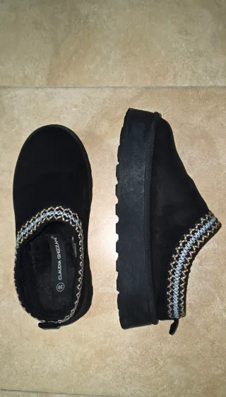 Zuecos Negros Cálidos CLAUDIA GHIZZANI Talla 39 ¡Prácticamente NUEVOS! Solo 2 usos. Marca: CLAUDIA GHIZZANI Talla: 39 Color: Negro Zuecos súper cómodos y calentitos con forro interior suave. Perfectos para el invierno. Detalle: Borde trenzado decorativo (ver fotos). Suela: Plataforma robusta y antideslizante. Condición: Usados solo DOS VECES. ¡Están impecables!