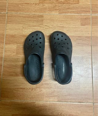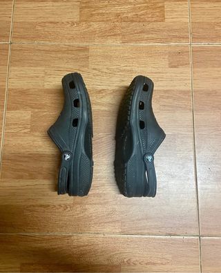 Zuecos Crocs negros. - Diseño clásico con orificios frontales. - Suela con textura para mayor agarre.