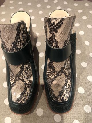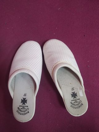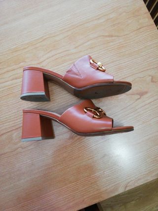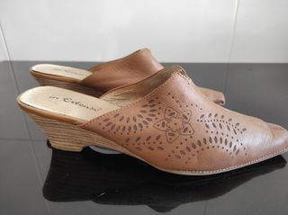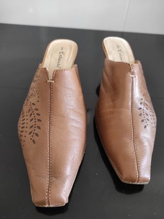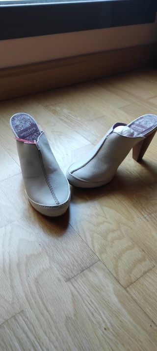 Zuecos de piel con tacón generoso, extra cómodos.En número europeo 37, sin estrenar