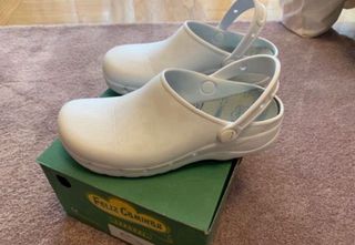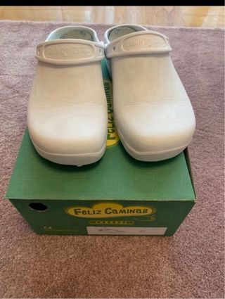 Zuecos de trabajo, marca feliz caminar, talla 35, prácticamente sin uso. Perfectas condiciones. Marca de referencia en zuecos de trabajo por su confort