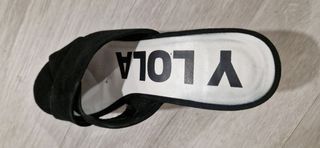 Preciosos zuecos de la marca BIMBA Y LOLA. Son de color negro y tienen un diseño elegante y sofisticado. - Fabricados con ante. - Tacón de plataforma. - Diseño cruzado en la parte superior. - Se venden dos pares.