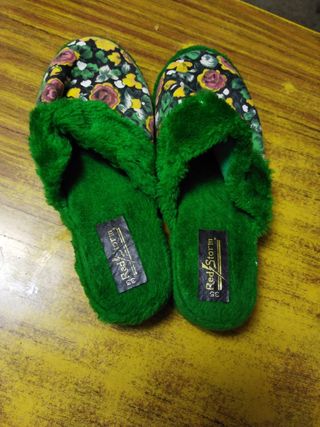 Preciosas pantuflas para estar cómoda en casa. Son de la marca Red Storm y la talla es 35. Muy poco uso, como se puede ver en las fotos. - Diseño floral multicolor. - Suaves y calientitas. - Perfectas para el invierno y entretiempo. Pregúntame por chat sin compromiso. Hago precio por varios lotes.