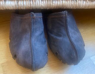 Zuecos de cuero con un diseño único. - Material: Cuero - Color: Marrón - Detalle de costuras visibles - Aberturas decorativas en la punta y tachuelas