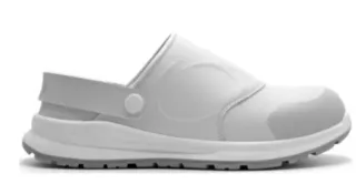Zueco modelo Reno en color blanco. - Diseño cerrado. - Correa trasera ajustable.