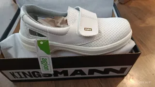 Zuecos blancos de la marca Kingsman. Cuentan con un diseño moderno y práctico. - Cierre de velcro. - Puntera reforzada. - Perforaciones para ventilación. - Suela antideslizante.