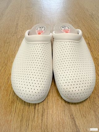 Zuecos Dian unisex blancos, talla 42 y talla 38.