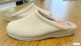 Zapatos cómodos y prácticos de color blanco. Fabricados en España, sin usar. Me han mandado plantillas y me quedan pequeños. - Cierre de velcro. - Diseño anatómico.
