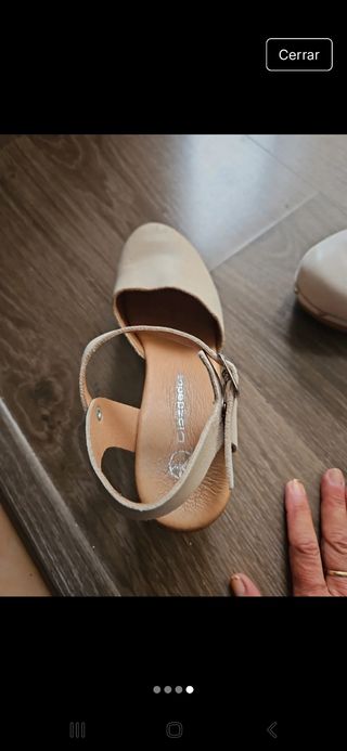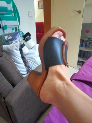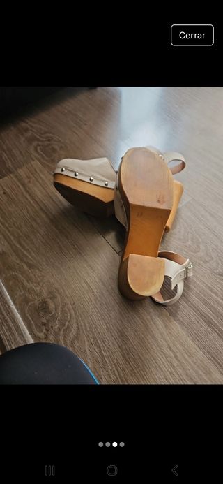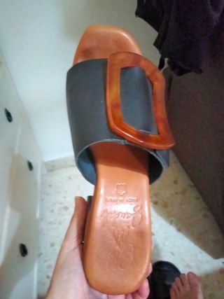 Preciosos zuecos de piel, talla 37. Ideales para verano. Un solo uso, vienen en su caja original son preciosos y comodísimos - Color marrón y negro - Diseño de plataforma. - Hebilla decorativa.