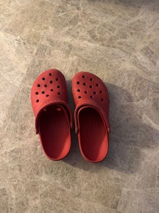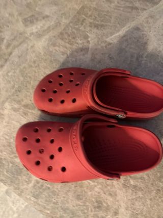 Calzado tipo zueco en color rojo. - Diseño clásico con orificios. - Correa trasera. - Suela con relieve.