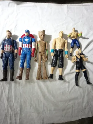 Lote de muñecos de acción. - Capitán América - Groot - John Cena - Otro luchador
