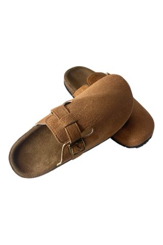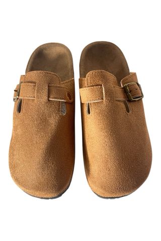 Zuecos cómodos de estilo Boston. - Material exterior tipo ante. - Hebilla metálica ajustable. - Diseño abierto en el talón.